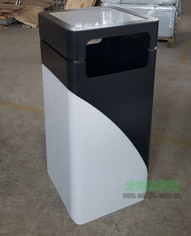 這批垃圾桶使用優質冷軋鋼板通過鈑金工藝剪切、折彎、焊接、組裝而成。外表簡潔大方,蘊含一股藝術典雅的氣質,再配合其類似陰陽結構的黑白絲印,讓它在現代與古典之間達到一種完美的平衡。這不僅僅是一個簡單的垃圾桶,更是一道美麗的風景線,一件賞心悅目的藝術品。