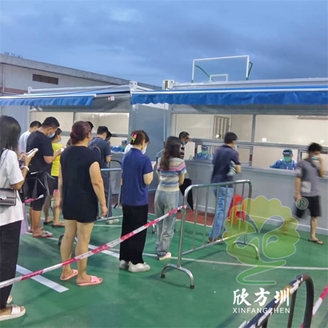 隨著廣東深圳的天氣越來越熱,7月份的深圳疫情有不少的醫護人員大白已中暑,近日這種辦可移動集裝箱醫用核酸檢測采樣亭彩鋼板活動房也是很火的一款,好的社區街道辦都在采購這種簡易核酸亭,醫護人員大白的福利來了,之前穿著防護服吹著風扇還是不管用,下班后醫護人員脫下防護服都是一身汗水,現在這種核酸亭內部可以安裝空調,開著空調做核酸就好多了,深圳是一個開放密集的城市,幾年以來最寬松我們這邊需要72小時核酸結果,現在做核酸已經是常規化了,深圳沒有疫情但是也是外省城市的輸入重點城市,深圳也是國際港頭對應貨物輸入輸出,還有就是假期香港的疫情深圳也需要防范。