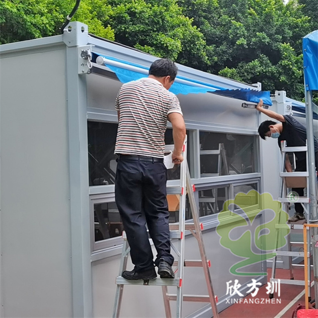 這批可移動核酸檢測采樣亭彩鋼板活動房,分布在龍華區福城街道幾個社區,大水坑,章閣社區,茜坑社區,桔塘社區,興富社區 福民社區,共37個。單人采樣房具體的尺寸是2000*2000*2700mm,雙人采樣規格4000*3000*2700mm。集裝箱式,使用方便,制作快捷,配備風扇,空調,雨棚和擋雨板,照明,隔熱,防潮,等功能。
