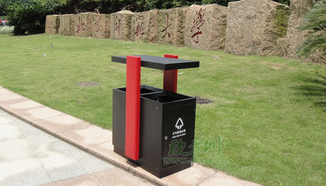 ? 為了美化校園環境,北師大珠海分校于2013年8月底在深圳垃圾桶訂購了F185鋼板分類垃圾桶。這批垃圾桶采用優質冷軋鋼經沖床沖孔、表面經過除油、噴砂防銹處理后,再進行酸洗磷化處理;表面清理干燥后整體進行烤漆處理。? F185鋼板分類垃圾桶的規格是750*470*940mm,桶身為黑色,立柱暗紅色,絲印白色分類標識;表面磨砂烤漆,啞光效果。有耐火安全,抗高低溫,堅固耐用,不易破損、經久耐用的特點,廣泛應用于工業園、學校等場所。