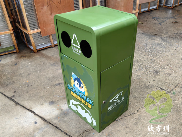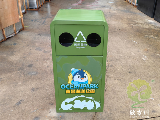 結構優化:桶體線條流暢,頂部投放口開闊,內桶套袋更換便捷,底部穩固設計兼顧安全與抗風。 定制垃圾桶一經投放,效果立竿見影。游客中心反饋顯示,新穎別致的垃圾桶常成為游客駐足拍照的“小景點”,尤其受到兒童喜愛。公園管理人員更對其易清潔性贊不絕口:“濕布一擦即凈,頑固污漬也能輕松去除,省時省力。”更關鍵的是,分類標識的清晰展現有效引導了游客行為,可回收物分揀準確率明顯提升。在耐用性方面,經歷長期高強度使用和不同季節氣候考驗,桶體結構依然穩固,UV打印圖案色彩鮮艷如初,維護成本顯著低于預期。