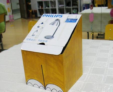 4、畫好虎臉,用膠水粘在飛利浦盒蓋上。