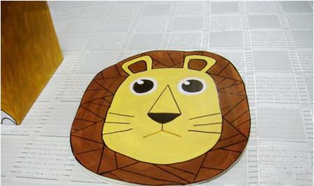 3、垃圾桶桶蓋直接用飛利浦盒蓋是不是毫無美感,小編找來一塊紙塊,剪成圓臉狀,畫了個可愛的虎臉。