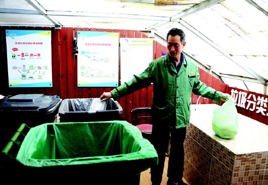 正在打掃院子的丁貴齋兩年前剛住進湛山小區(qū),以前他并沒有垃圾分類的習慣,在這兩年中也受社區(qū)影響開始了垃圾分類。?“以前沒有垃圾分類這個意識,現(xiàn)在住在這里,四周都有垃圾分類的宣傳牌,也就自覺地有了垃圾分類的意識。?”丁貴齋說。?