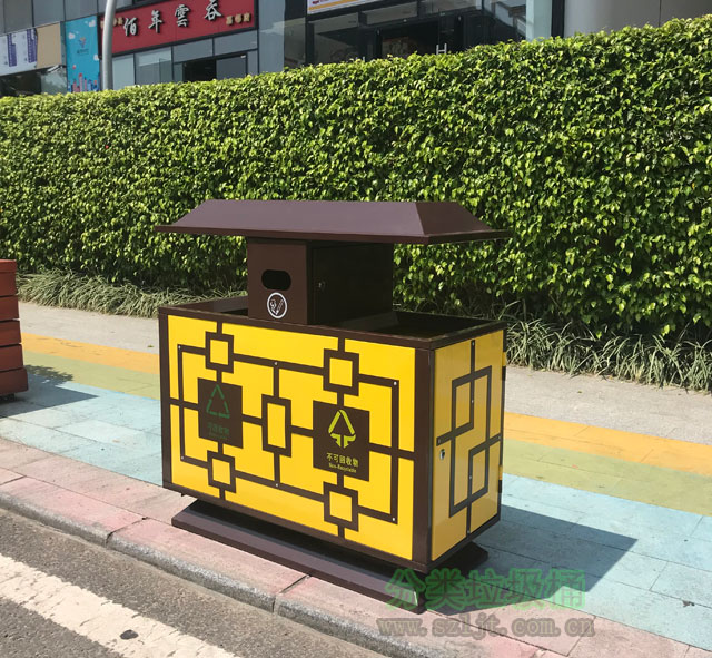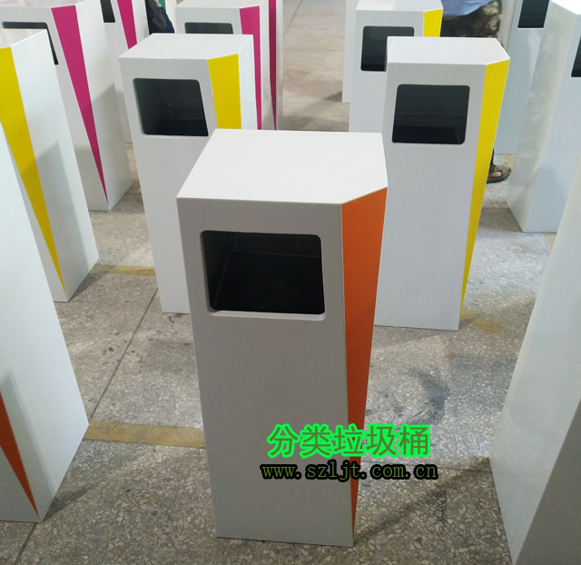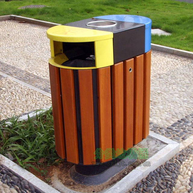 鋼制噴塑分類垃圾桶:使用優質鋼木剪裁、沖孔、折彎、組裝、焊接、打磨、噴塑、絲印而成,外表美觀,功能實用,適用于街道、學校、景區、廣場、小區等各種戶外場所。