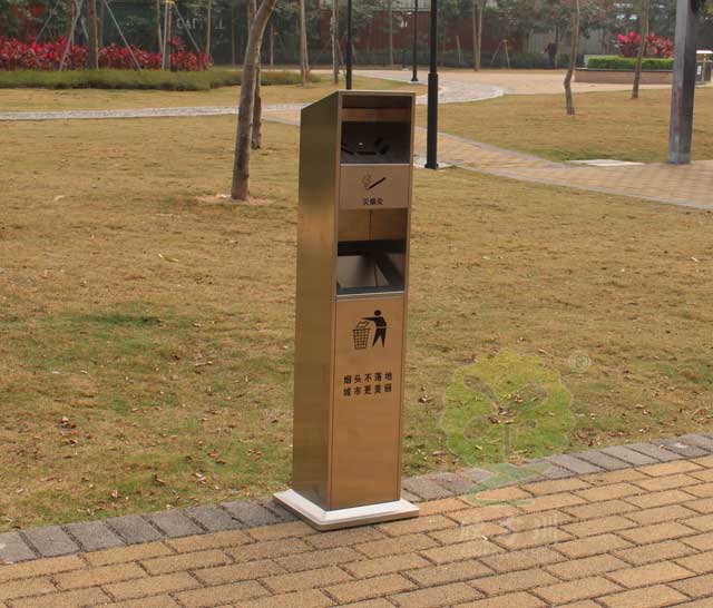 不銹鋼煙灰柱垃圾桶:上部分是滅煙柱,下部分是果皮箱,使用鍍鋅內膽,底部使用膨脹螺絲固定,適用于公園、景區、廣場、街道、小區等戶外場所,生產周期10-15天。