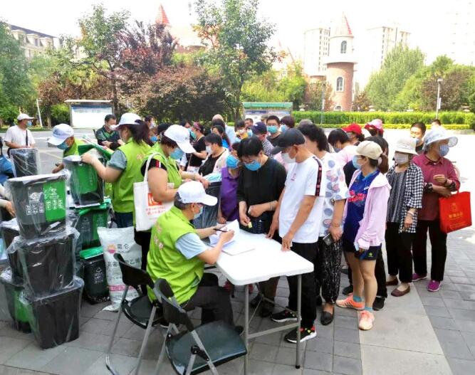 收到社區通知后,家住季景園的李女士今天提前等候在活動現場,“垃圾分類本身就能讓環境更美,生態城還免費發放垃圾桶,我覺得挺貼心的。”
