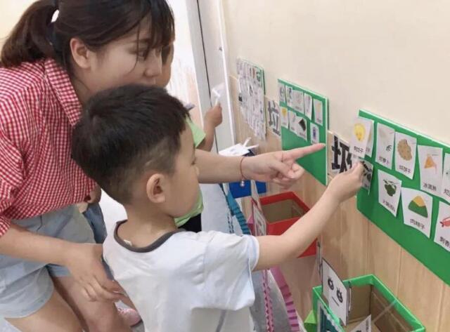 各班級開展垃圾分類教育活動,通過孩子放學送垃圾回家的游戲形式,引導幼兒進行正確投放。