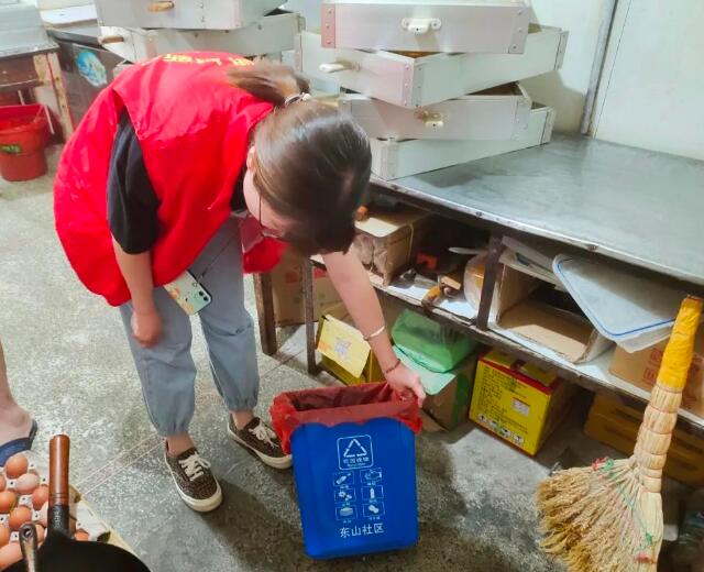 東山社區(qū)開展沿街商鋪分發(fā)可回收物分類垃圾桶活動