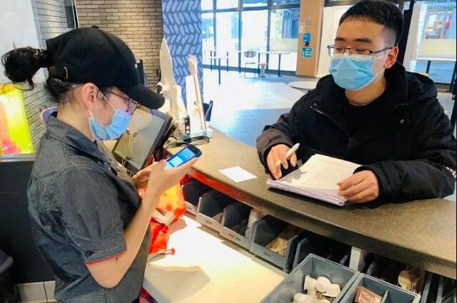 為了不影響商鋪的生意,工作人員充分利用商鋪的閑暇時間一一發(fā)放垃圾分類宣傳冊,用顯淺易懂的方式為店主講解垃圾分類知識,耐心解答店主提出的日常垃圾分類難題,同時為每家商鋪張貼了分類投放指南和垃圾桶分類標識,引導大家準確投放。在此過程中,工作人員發(fā)現(xiàn)雖“偉明餐廚垃圾回收”小程序已上線多時,仍有不少商戶存在不懂操作、無法登陸等問題,為此,現(xiàn)場工作人員不厭其煩地指導商戶進行登陸、記錄等,確保每位商戶的問題得到實質解答。