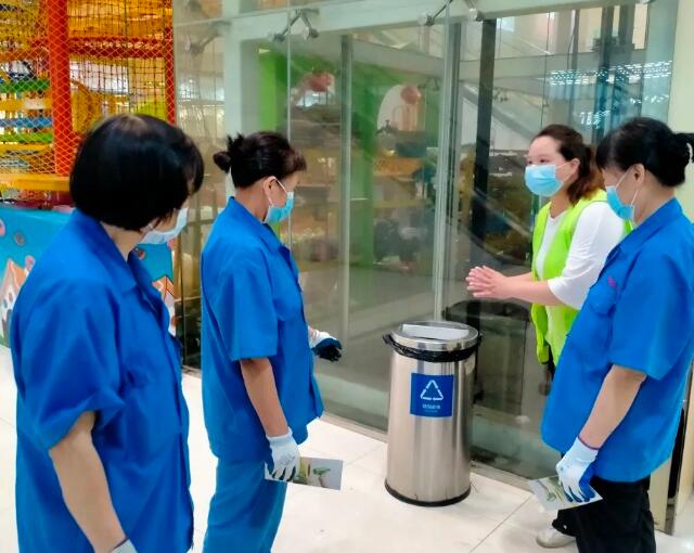 為了讓大家更加了解如何提高垃圾分類的準(zhǔn)確率,宣傳員利用垃圾分類收集屋“現(xiàn)身說法”并結(jié)合商場實際對垃圾分類知識進(jìn)行細(xì)致地講解,讓大家把分類理念融入到日常的工作生活中,深入理解垃圾分類的意義,學(xué)習(xí)掌握垃圾分類的方法,做到對生活垃圾進(jìn)行正確分類投放。