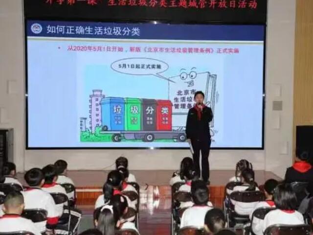 北京市城管執法局、朝陽區城管執法局、勁松街道在陳經綸中學帝景分校聯合開展“開學第一課”生活垃圾分類主題城管開放日活動。
