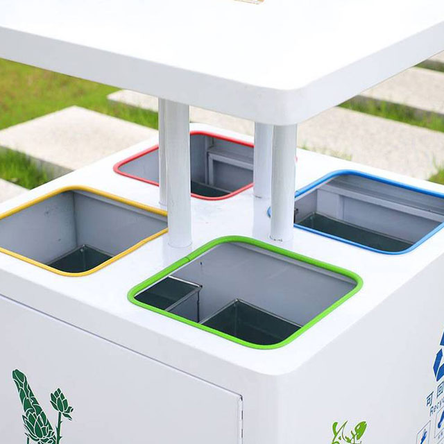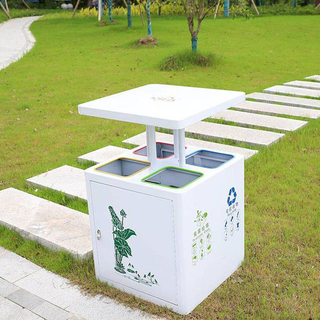 垃圾桶內(nèi)部精準(zhǔn)劃分成可回收物、有害垃圾、廚余垃圾和其他垃圾四個(gè)區(qū)域。在公園中,游客可以輕松地將喝完的飲料瓶、廢紙殼等可回收物放入相應(yīng)區(qū)域,讓資源得到循環(huán)利用;將廢舊電池、過(guò)期藥品等有害垃圾妥善投放,避免對(duì)環(huán)境造成污染;野餐產(chǎn)生的食物殘?jiān)鼩w入廚余垃圾區(qū);用過(guò)的紙巾、煙蒂等其他垃圾放入對(duì)應(yīng)的位置。清晰明了的分類(lèi)標(biāo)識(shí)搭配彩繪圖案,讓垃圾分類(lèi)變得簡(jiǎn)單易懂,即便是小朋友也能輕松掌握。