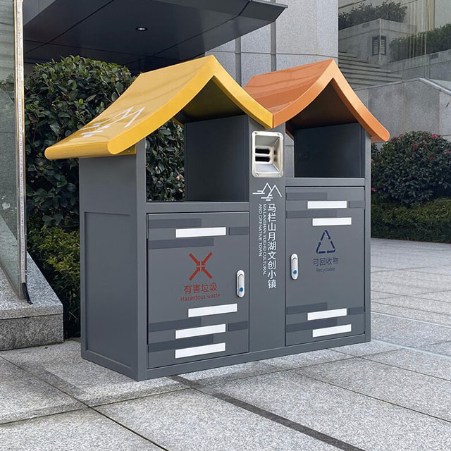 在戶外公共空間,垃圾桶作為環保設施的重要一環,其設計與功能直接影響著環境的整潔與美觀。今天,為大家帶來一款獨具特色的戶外屋形鍍鋅板分類垃圾桶,它以創新的設計和實用的功能,為垃圾分類工作注入新的活力。獨特屋形設計,融入戶外環境