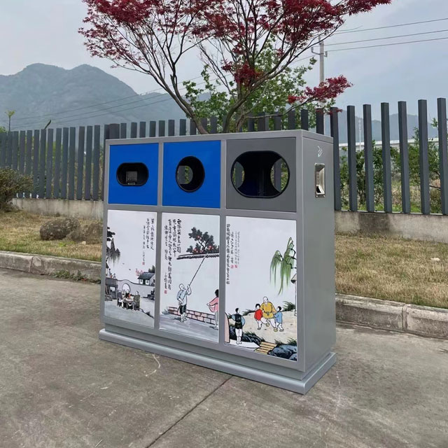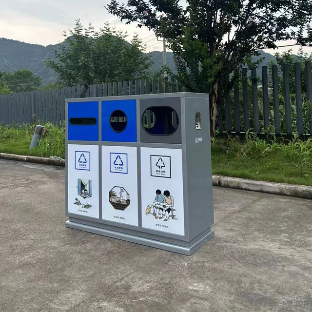 垃圾桶內(nèi)合理劃分可回收物、有害垃圾和其他垃圾三個(gè)區(qū)域。在城市街道上,行人喝完飲料后,可輕松將塑料瓶、易拉罐等可回收物放入相應(yīng)區(qū)域,這些物品將被回收再利用,實(shí)現(xiàn)資源循環(huán),減少資源浪費(fèi)。廢舊電池、過(guò)期藥品等有害垃圾,準(zhǔn)確投放到指定區(qū)域,避免對(duì)土壤和水源造成污染,守護(hù)城市生態(tài)環(huán)境。難以歸類的其他垃圾,也能有專門(mén)的投放位置。清晰醒目的分類標(biāo)識(shí)和簡(jiǎn)潔圖標(biāo),讓行人一眼就能明白如何投放,大大提高了垃圾分類的效率和準(zhǔn)確性,推動(dòng)城市垃圾分類工作順利開(kāi)展。人性設(shè)計(jì),方便行人投放