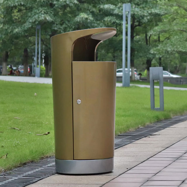 流暢線條,美觀大方:圓柱形的設計賦予了垃圾桶簡潔流暢的線條,給人一種現代、時尚的美感。這種簡約的造型能夠與各種戶外環境完美融合,無論是在繁華的城市街道,還是寧靜的公園、校園,都不會顯得突兀。它的存在不僅是一個垃圾收納容器,更像是一件精致的戶外裝飾品,為周邊環境增添了一份獨特的魅力。