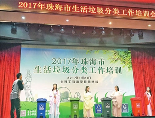 ? 會上,珠海市垃圾分類服務商深圳德立信環境工程有限公司總經理夏三省、北京理工大學珠海學院博士彭祥捷對垃圾分類知識作了深入淺出的講解。北京理工大學珠海學院的志愿者們還帶來了一出生動的垃圾分類情景劇,為嚴謹的培訓會帶來了一絲趣味。當天下午,與會成員來到中信生態環保產業園和海澄村,參觀垃圾分類試點單位,實地感受我市垃圾分類工作的開展情況。