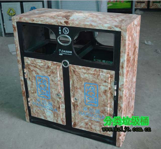 ? ? XFZ-A115玻璃鋼仿大理石酒店垃圾桶規格875*400*1035,是經過市場考驗,獲得眾多客戶好評的一款熱銷玻璃鋼垃圾桶,外形采用經典傳統的方形,簡潔工整。桶門上的絲印標志可以隨客戶需求更換,桶身結構采用雙分類結構,契合國內主流的垃圾分類習慣,能將垃圾收集與垃圾分類政策最優貫徹落實。