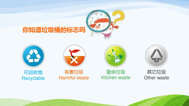 如今中古哦生活垃圾一般可分為四大類:可回收垃圾、廚余垃圾、有害垃圾和其他垃圾。目前常用的垃圾處理方法主要由:綜合利用、衛(wèi)生填埋、焚燒發(fā)電、堆肥、資源返還。廢紙是我們學(xué)習(xí)容易產(chǎn)生的垃圾,她的回收利用價值很高:回收利用1噸廢紙可以再造出0.8噸好紙,可以挽救17棵大樹,節(jié)省3立方米的垃圾填埋廠空間,降低造紙75%的污染排放,而每張紙最少可以回收兩次!以下最新垃圾分類ppt模板由分類垃圾桶網(wǎng)收集整理。