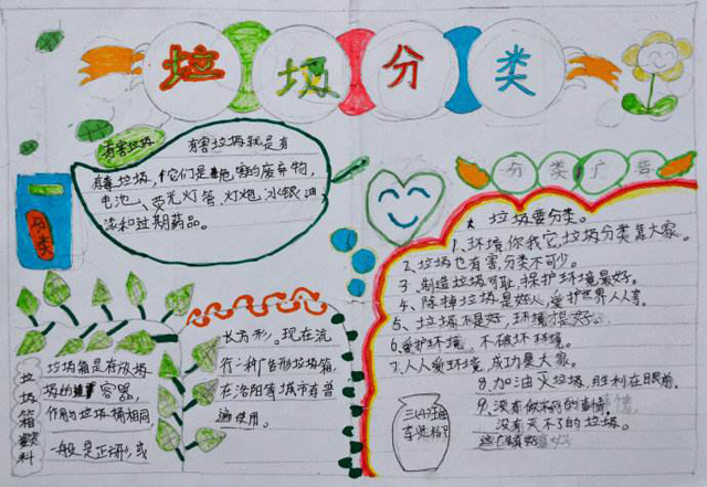 垃圾分類可以分為四種,有可回收垃圾,其他垃圾,餐廚垃圾和有害垃圾。可回收垃圾是指:適宜回收循環使大自然是我們的朋友,它可以給我們帶來清新的空氣……所以我們要保護大自然。我建議,要舉行一個垃圾分類,讓大自然變得更加美麗。