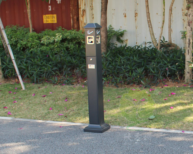 C633不銹鋼煙灰柱規(guī)格225*225*1185mm,呈長條傳,側(cè)面有三角鑰匙,可以打開側(cè)門,方便清理位于內(nèi)套管的煙蒂煙灰,底座分兩種,一種是室內(nèi)采用的,在底部裝有防滑墊,一種是戶外采用的,底部使用膨脹螺絲固定。