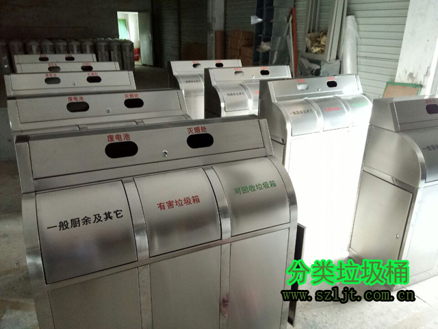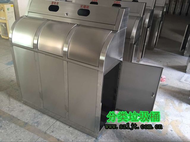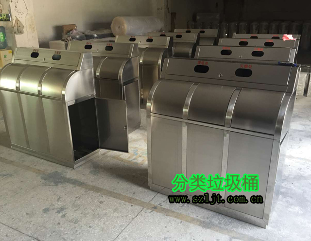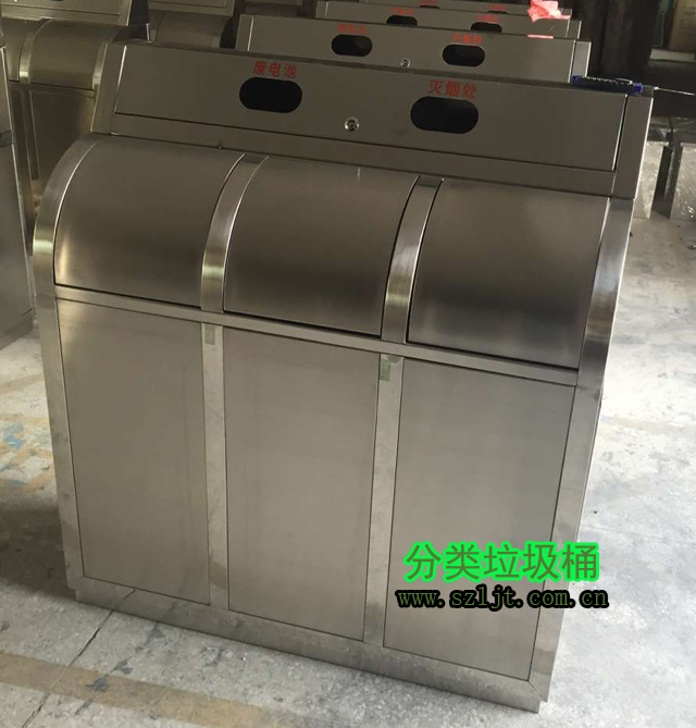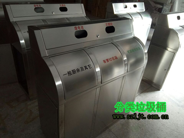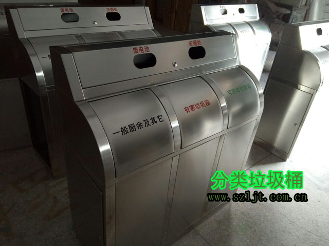 一般來說垃圾分為可回收垃圾和不可回收垃圾兩大類,但是對于小社區來說這兩種分類方式太過于簡單,不能滿足社區居民日常生活中產生的生活垃圾全面覆蓋要求。小區居民所產生的廚余垃圾不能簡單的歸類于可回收垃圾或不可回收垃圾,從成分上來說,它是可以回收的,因為它可以經過加工制作成飼料、肥料,但是由于廚余垃圾容易變質腐爛,故需要及時按時處理。且容易弄臟其他類型的可回收垃圾,增加其他可回收垃圾的分類回收難度,所以我們最好將廚余垃圾單獨化作一個大類,基于這種考慮,欣方圳生產設計了小社區物業不銹鋼分類垃圾桶,反響非常好。