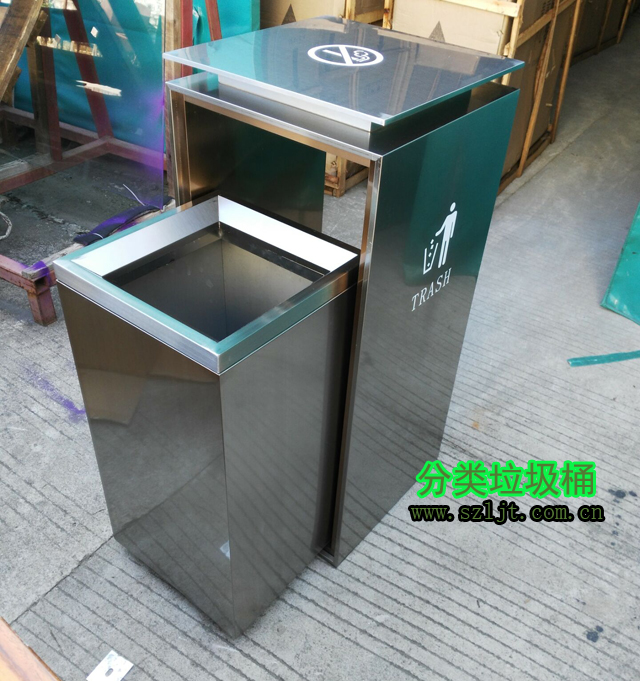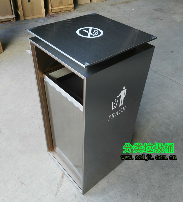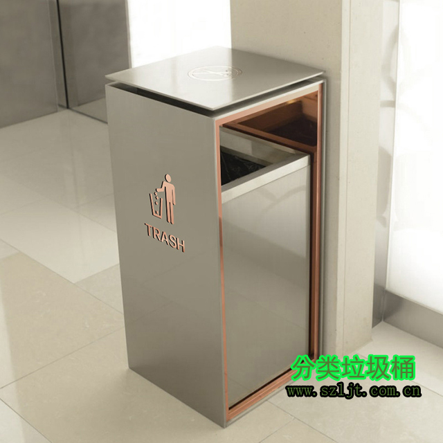 室內方形不銹鋼禁煙標志垃圾桶型號xfz-413,規格780*350*350,屬于經典室內方形垃圾桶款式,垃圾桶身使用304不銹鋼材質切割、折彎、焊接而成,然后在表面電鍍一層其他金屬,保護桶身避免氧化生銹,使其看起來光滑亮麗。內置鍍鋅內膽可以從自由取出放進,方便置換清洗,保證垃圾桶干凈如新。垃圾桶設計充滿現代時尚感,非常適合酒店、賓館、辦公樓、會所等高檔商務場所。