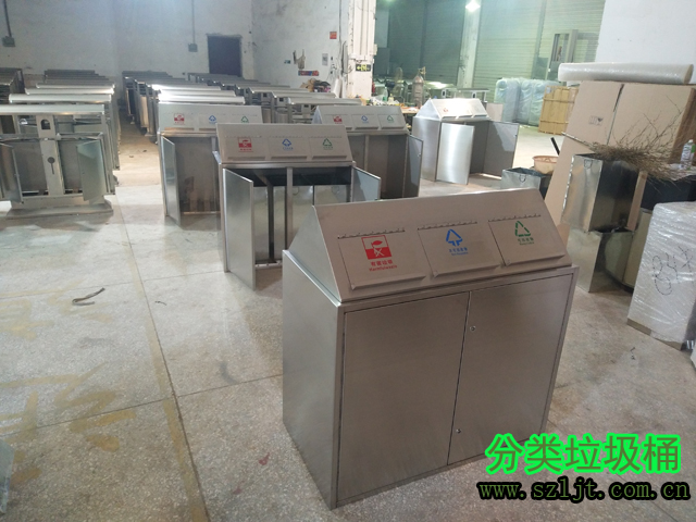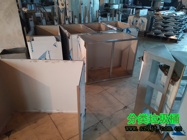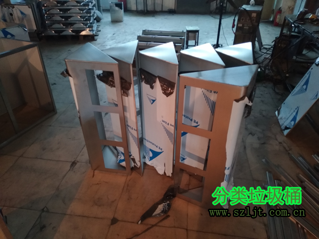 小區(qū)物業(yè)不銹鋼三分類(lèi)垃圾桶生產(chǎn)組裝圖片: