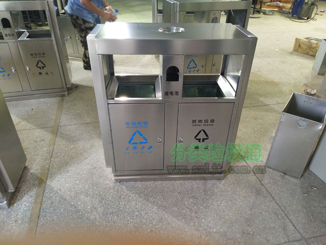 內桶:鍍鋅內桶; 形狀:直角方形; 顏色:不銹鋼本色; 分類:雙分類; 應用場所:室內戶外