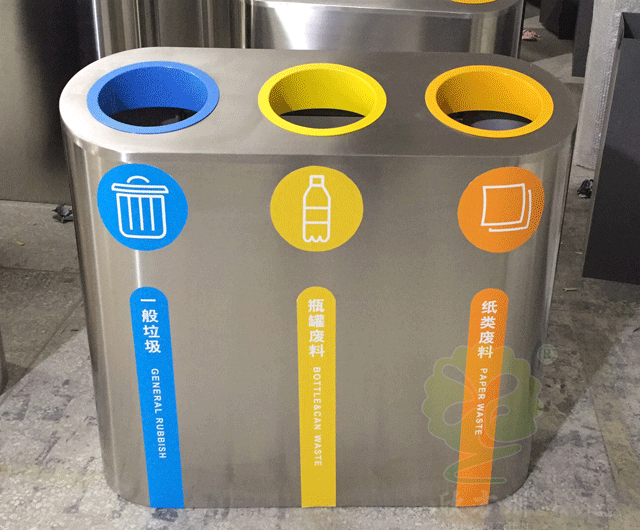 這款垃圾桶采用三分類形式,分別收集一般垃圾,瓶罐廢料,紙類廢料,瓶罐和紙類是具有重大回收價值的可回收垃圾,對它們進(jìn)行分類回收,可以節(jié)約資源,保護(hù)環(huán)境,有利于國家綠色環(huán)保事業(yè)的推進(jìn)。據(jù)了解,一頓塑料瓶可以可以回收0.75噸原料,一頓廢紙回收可以生產(chǎn)成品紙0.8噸,相當(dāng)于少砍伐20棵樹齡為30年的樹木。每個人都有義務(wù)做好垃圾分類,為自己的綠色家園做出點點滴滴的貢獻(xiàn)。