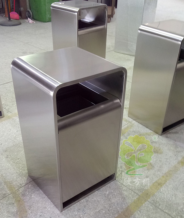 卓越品質、精湛工藝‘、時尚外觀是XFZ-C355室內方形不銹鋼垃圾桶的優點,它以優質303#不銹鋼剪裁、組裝、焊接而成,卻渾然天成、嚴絲合縫、看不到一點縫隙和焊接痕跡。完美的折彎曲線非常考驗制作工人的手藝,這種曲線不僅僅代表了美的藝術,更是實際使用過程中積累的智慧與經驗結晶。它能很好的防止人群磕傷碰傷,保護附近人流的安全。加厚的桶身讓垃圾桶更加的堅固耐用,看起來更高檔更有質感,這種高檔優質的外形讓它非常適合擺放于辦公樓、酒店大堂、商場等奢華場所。桶底配有防滑墊,無需使用螺絲就能起著很好的固定作用,還能防止地面刮花,專門為室內場所設計。
