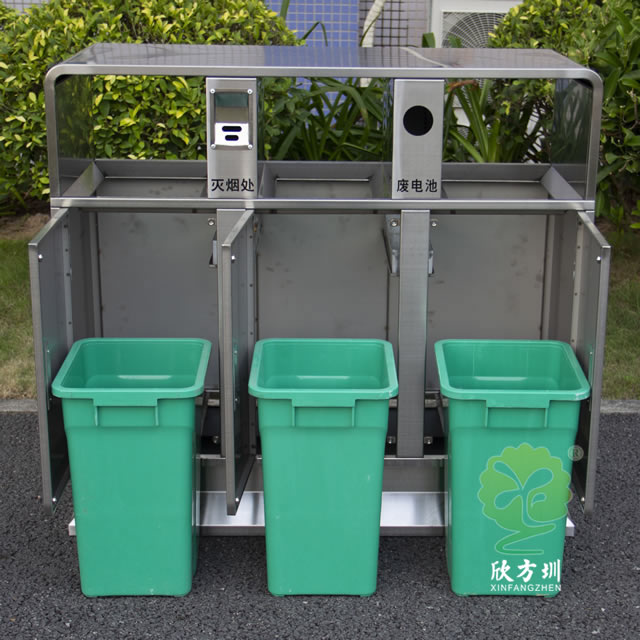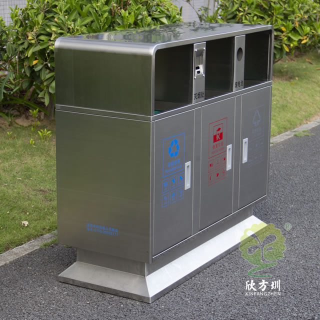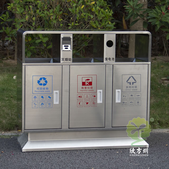 戶外校園三分類不銹鋼垃圾箱的優點: