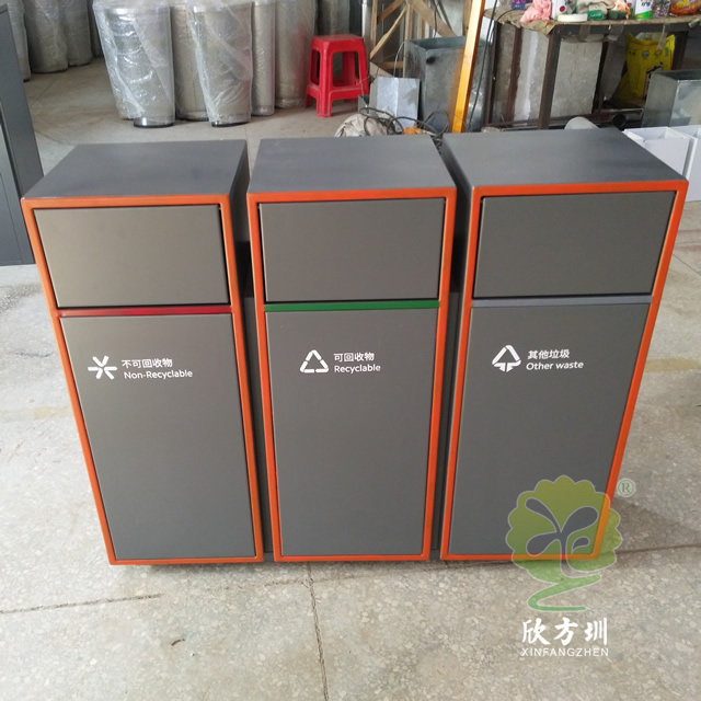 噴塑組合式不銹鋼分類垃圾箱采用201#,202#,304#優(yōu)質(zhì)不銹鋼材料模壓成型,堅(jiān)固耐用,不易破損;耐火安全,抗高低溫,適合各種惡劣氣候條件;金屬亮澤,高雅美觀,廣泛適用于各種機(jī)場、商場高檔場所;內(nèi)外表面光潔,減少垃圾殘留,易于清潔;配置鍍鋅板內(nèi)桶,便于垃圾清倒;激光切割開料,尺寸精準(zhǔn),投口無縫焊接成型,打磨拋光處理圓滑不割手。