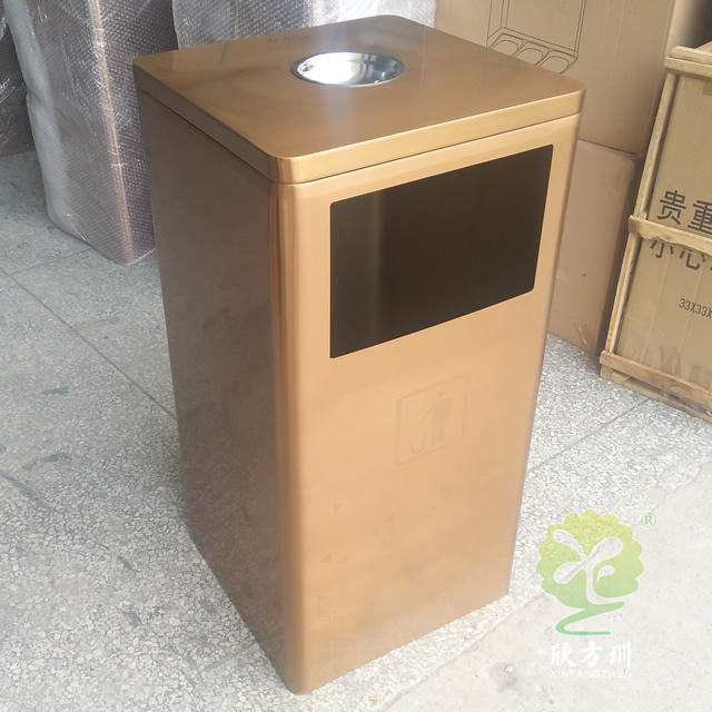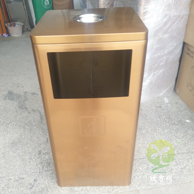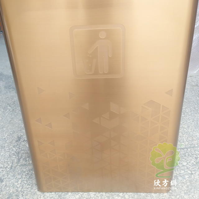 腐刻電鍍土豪金不銹鋼果皮箱是欣方圳設計生產的一款經典熱銷垃圾桶,這款垃圾桶雖然使用不銹鋼板制作而成,但是外形采用了電鍍土豪金設計,使其看起來有一股自然古典氣質,特別適合各種歷史景區、戶外公園、別墅小區、學校廣場等場景使用。這款垃圾桶外表經過防腐工藝處理,防水防腐蝕、經久耐用、工藝精湛、物美價廉。如果你對這款垃圾桶感興趣,請直接聯系我們報價。