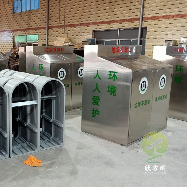戶外小區大容量不銹鋼分類垃圾箱一種存放垃圾的容器,可以采用201、304、316等不銹鋼制作,表面可以采用烤漆、噴塑、鏤空、UV打印等工藝處理,因為不銹鋼耐空氣、蒸汽、水等弱腐蝕介質和酸、堿、鹽等化學浸蝕性介質腐蝕,所以不銹鋼垃圾桶耐用性高。全身不銹鋼制作的垃圾桶還具有防火功能,堅固耐用。