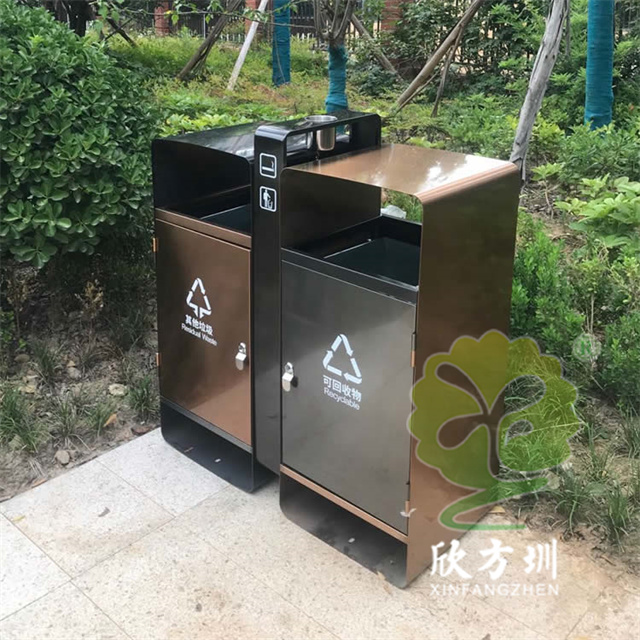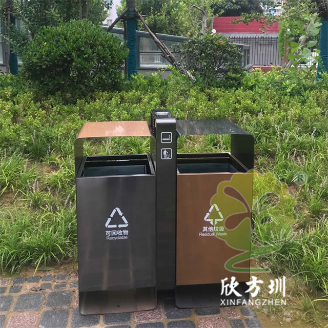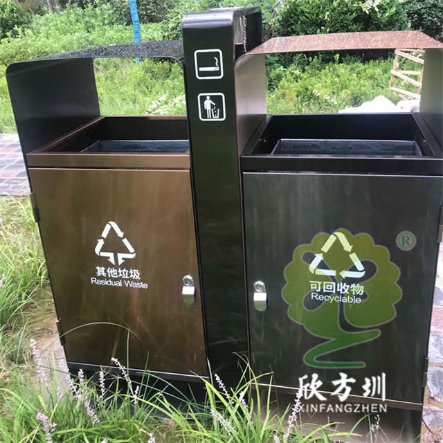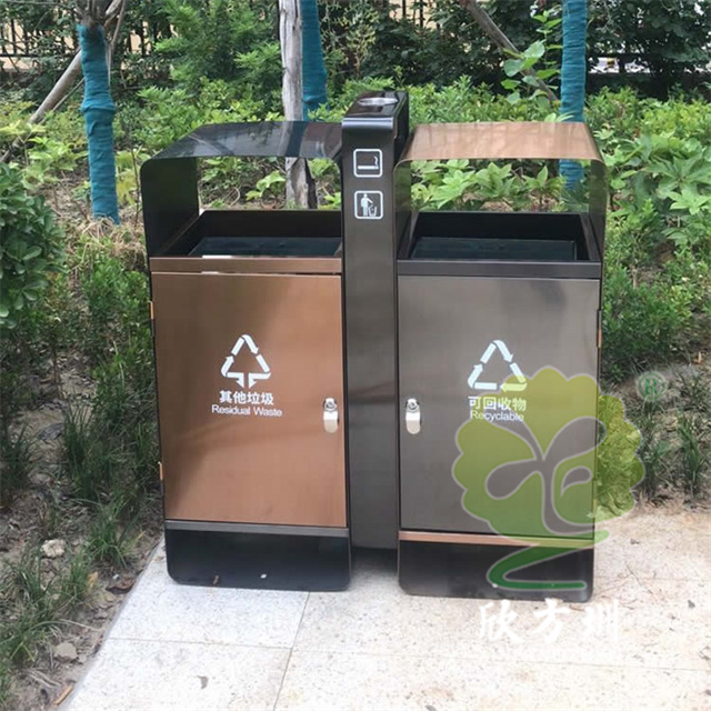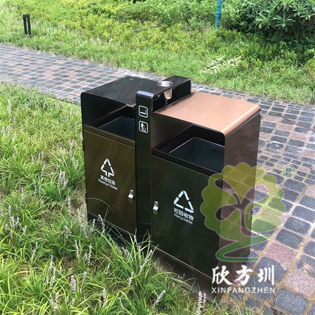戶外小區電鍍不銹鋼連體垃圾桶是欣方圳設計生產的一款經典熱銷垃圾桶,這款垃圾桶雖然使用不喜歡制作而成,但是外形采用了方形分類,使其看起來有一股自然大方氣質,特別適合各種歷史景區、戶外公園、別墅小區、學校廣場等場景使用。這款垃圾桶外表經過防腐工藝處理,防水防腐蝕、經久耐用、工藝精湛、物美價廉。如果你對這款垃圾桶感興趣,請直接聯系我們報價。