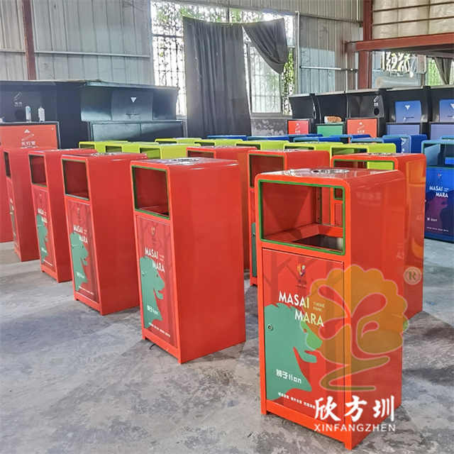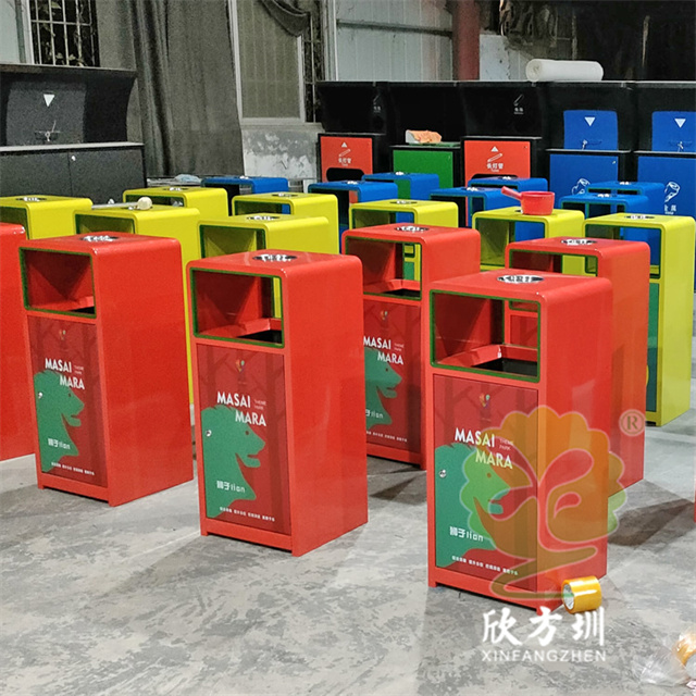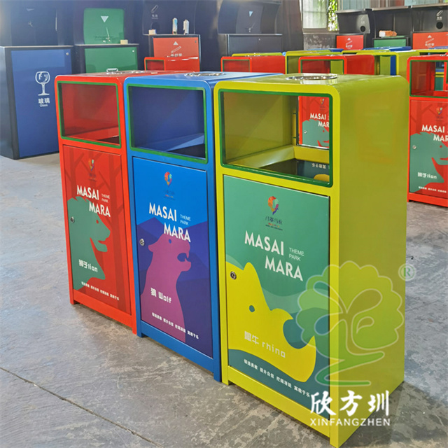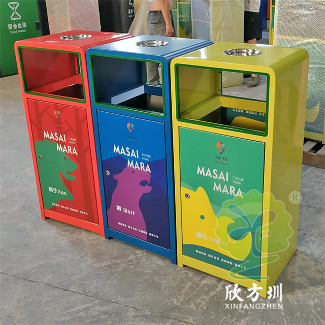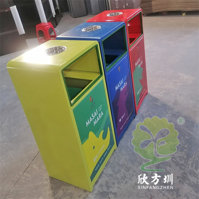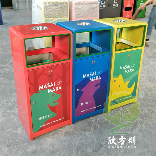 加厚組合式三色不銹鋼分類(lèi)垃圾桶采用了2.00mm厚304#不銹鋼板制造而成,一般常規(guī)的不銹鋼板厚度我們廠家都會(huì)使用1.00mm厚,室外組合式方形雙面投口設(shè)計(jì),表面采用了三色噴涂噴塑上色,垃圾桶門(mén)板應(yīng)用了UV打印抽象卡通圖案,頂部中心位置帶碗形煙灰盅,門(mén)板左中間帶三角鑰匙鎖頭,我們廠家支持板材、厚度、表面工藝定制。