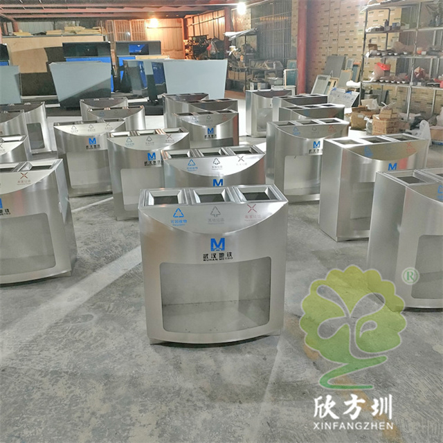 武漢地鐵站室內(nèi)透明三分類不銹鋼垃圾桶