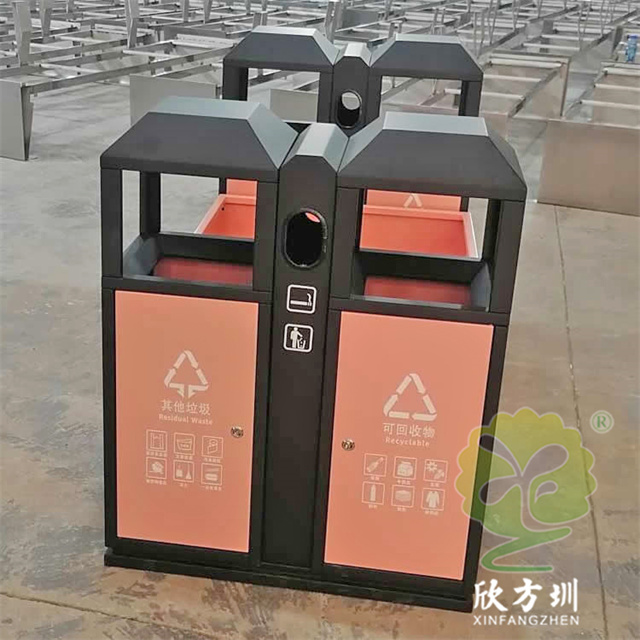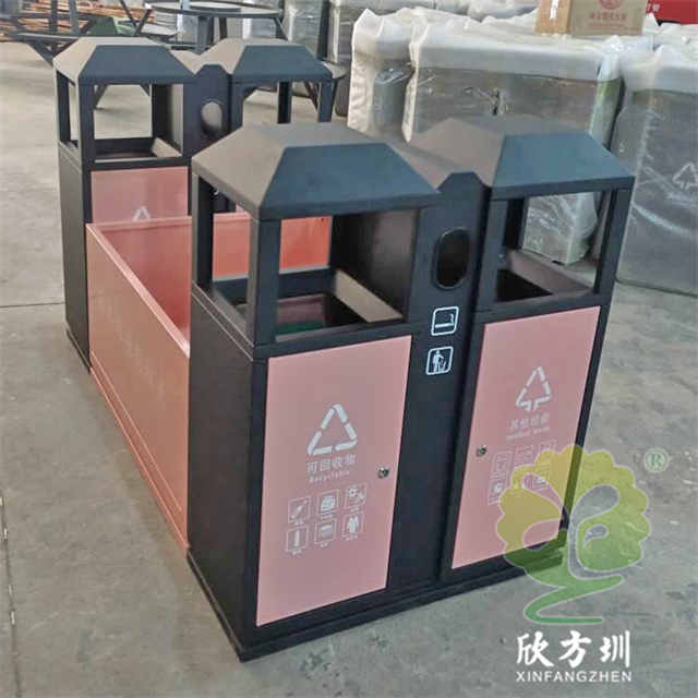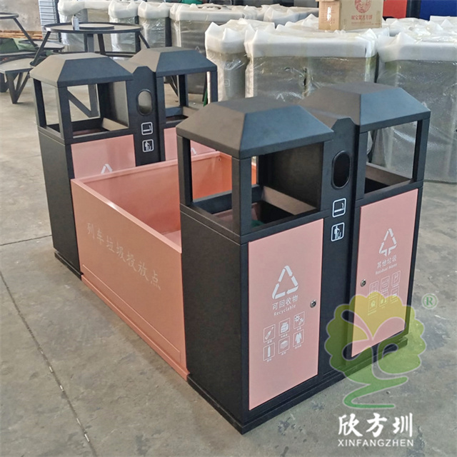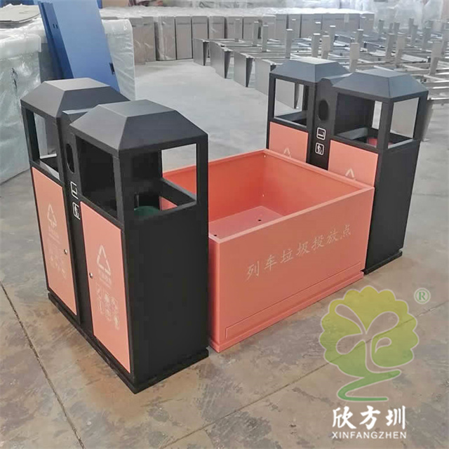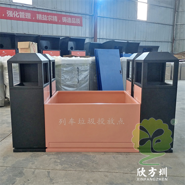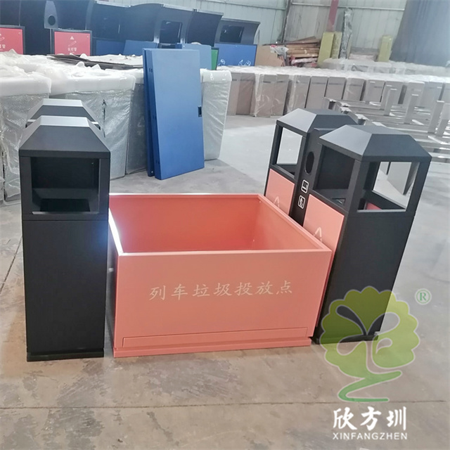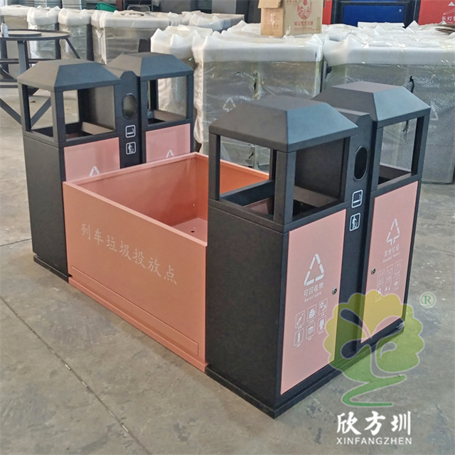 高鐵站火車站組合式不銹鋼分類垃圾桶材質(zhì)可以使用304不銹鋼板1.2mm厚制作,可以選擇鍍鋅板、201不銹鋼板定制,框架黑色噴粉烤漆,投放點(diǎn)和門板粉色噴塑,組合式兩個(gè)雙分類桶設(shè)計(jì),絲網(wǎng)印刷最新國(guó)標(biāo)分類標(biāo)識(shí)和列車?yán)斗劈c(diǎn),雙桶側(cè)面中上部分雙面帶煙灰盅,可以定制形狀尺寸和顏色。
