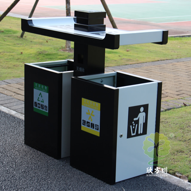 F348物業戶外鋼制噴塑分類垃圾箱,城市發展日新月異,人們對生活環境的衛生要求也越來越高,沒有人可以容忍自己家園周圍看上去臟、亂、差。整治臟、亂、差,建設衛生文明居住環境,是大部分城市的基本目標,居住環境的衛生整治離不開垃圾桶的幫助,甚至垃圾桶本身就能成為城市文明的一道亮麗風景線。沒有人愿意親近一個看上去布滿污漬,臟兮兮,充滿細菌的垃圾桶,而一個看上去干凈、衛生、美觀的垃圾桶,除了人們更愿意往里面投垃圾外,本身就能起到裝飾美化的作用。欣方圳設計生產的物業戶外鋼制噴塑分類垃圾箱就完全滿足這樣的作用。