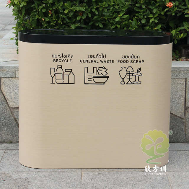出口轉(zhuǎn)木紋鍍鋅板三分類垃圾桶
