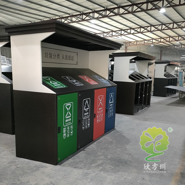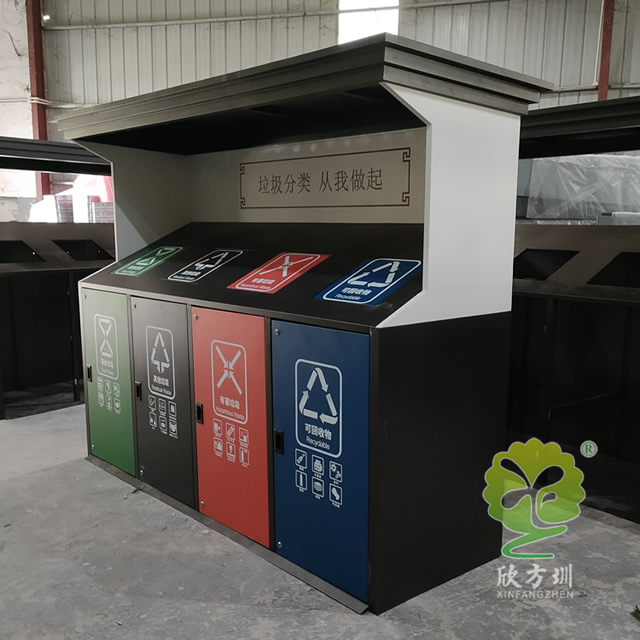 城市道路小區鍍鋅板四分類垃圾亭產品詳情: |