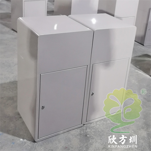 戶外公園景點組合式鍍鋅板分類垃圾桶整體1.0mm厚噴塑外筒,產品規格:450*450*900mm單個,方形任意組合式多分類設計,可以選擇用不銹鋼板制作桶身,桶身表面噴涂噴塑了米白色,背后可使用三角鑰匙開始開門取出內筒,內筒鍍鋅板0.4mm厚,正面絲印了最新國標分類標識,有現成的網版可以免費絲印分類標識。
