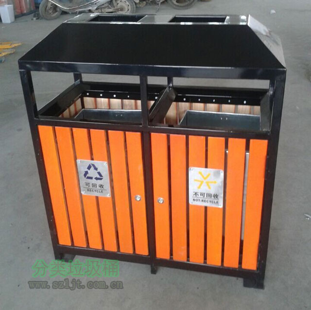 【產(chǎn)品顏色】:以山樟木的原色黃色為主色,覆蓋于桶身;垃圾桶的邊緣的鋼板立柱使用黑色絲印;桶身絲印紅綠兩色標(biāo)牌,分別代表不可回收垃圾與可回收垃圾,顏色對(duì)比鮮明和諧,簡(jiǎn)潔大方,實(shí)用美觀,還可根據(jù)客戶需求定制。